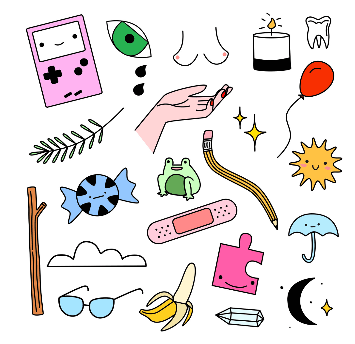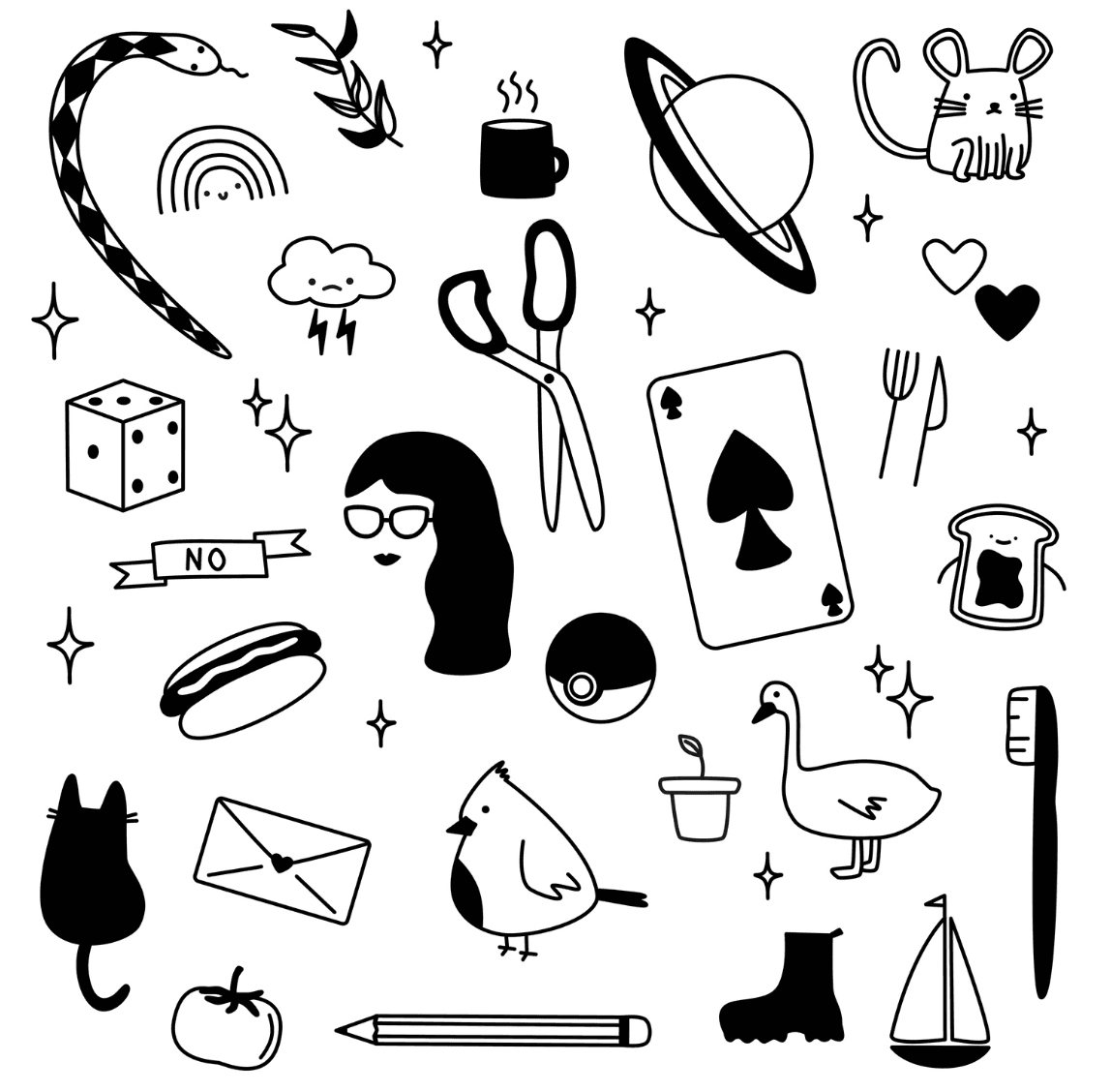 For fun, I love to create playful illustrations of everyday animals and objects using a vibrant color palette.